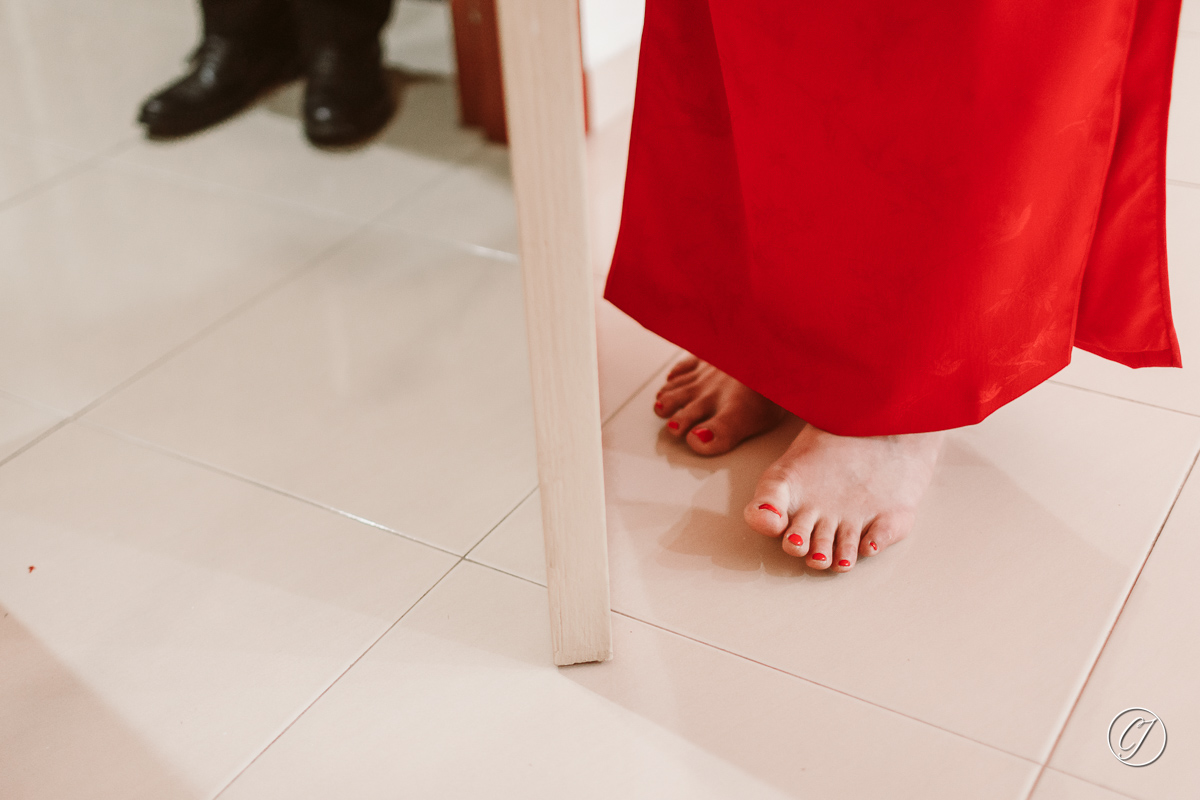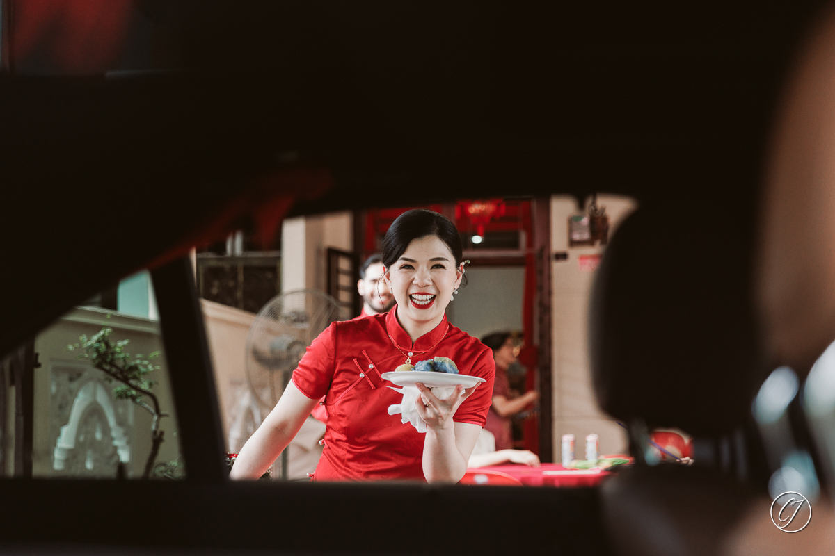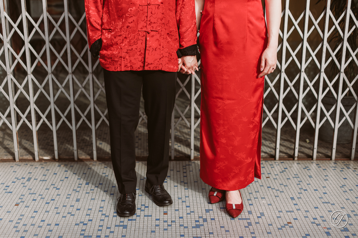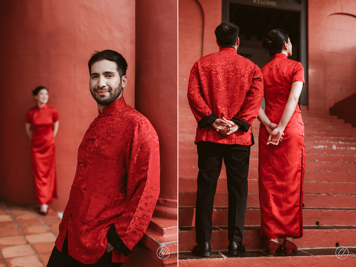Before their wedding day we spent some time wandering through the heritage zone of Melaka for a portrait session. They showed up in matching red outfits Ying Tian in her elegant red Cheong Sam and Fartash in a red Tang jacket, echoed the rich tones of the century-old Stadthuys buildings. And we moved through the old streets like it was just another day together chatting laughing and making the whole shoot feel comfortable and real.